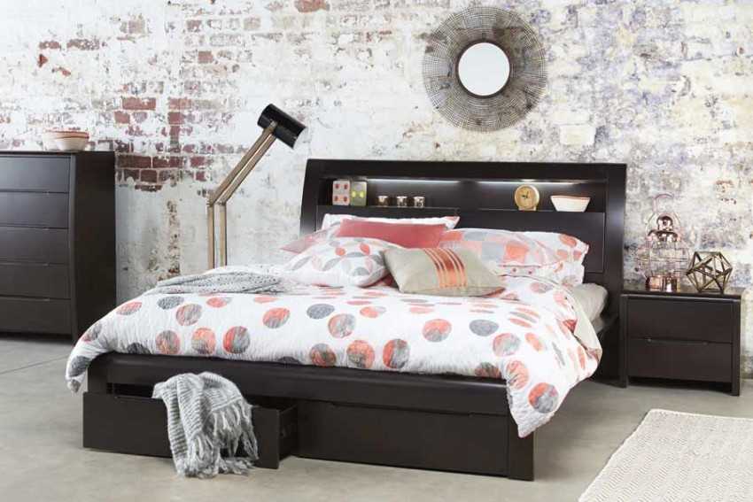 Полки с расставленными на них, небольшими светильниками, часами, книгами, фоторамками, статуэтками, шкатулками для украшений и другими декоративными предметами, позволяют значительно увеличить функциональность кровати и придать комнате некой уютности.