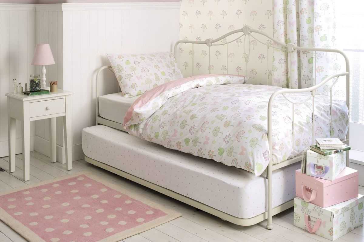 Если в спальне на полу лежит ламинат, лучше использовать специальные резиновые накладки на колесики – чтобы не поцарапать напольное покрытие. Взрослая раздвижная кровать трансформируется по выкатному принципу: из нижней половины выдвигается второе спальное место, которое кладется поверх металлического каркаса.
