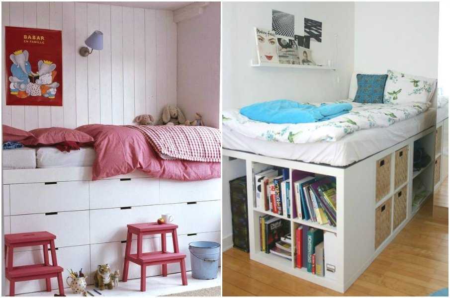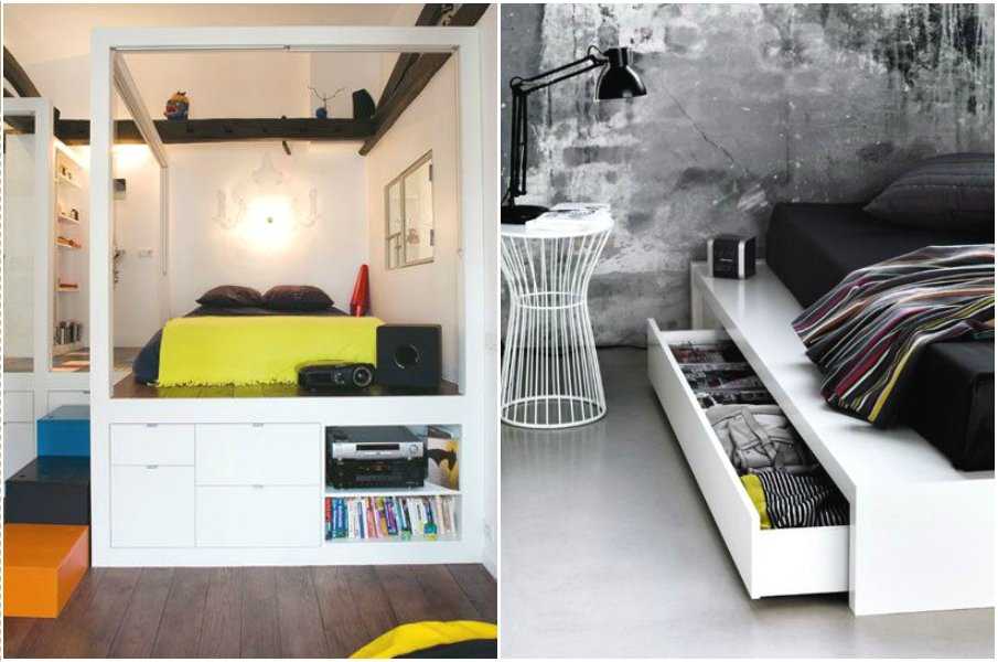 Для маленьких помещений следует выбирать подиумы с выдвижным спальным местом и ящиками для хранения. На подиуме можно оборудовать игровую или спальную зоны.