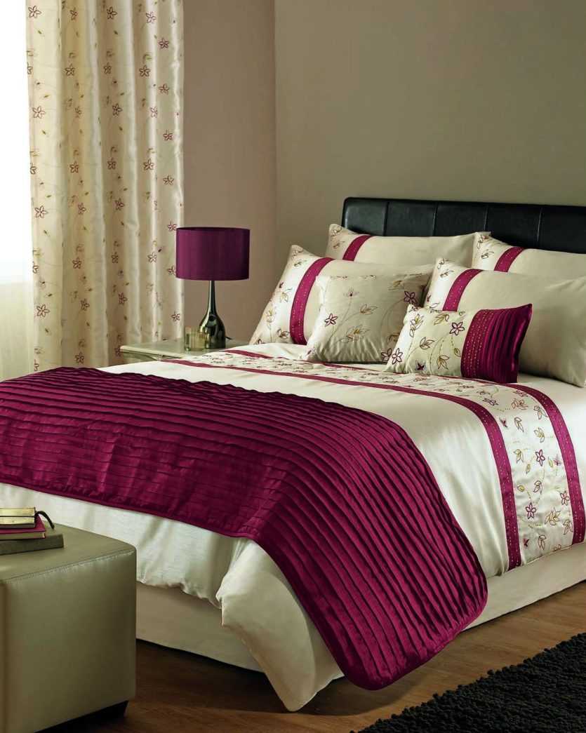 - размер спальни: если она просторная, то можно сделать яркий акцент, используя фиолетовое или красное покрывало, если небольшая – выбираем светлые оттенки, которые визуально расширят ее;