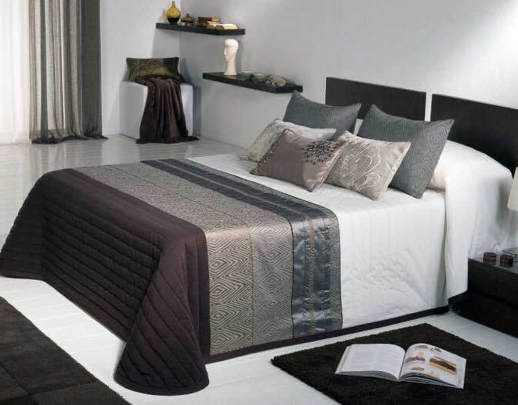 Особенно популярны серые покрывала – от “мокрого асфальта” до светлого, похожего на выбеленный от времени оттенок. Особенно выгодно смотрится однотонное покрывало в этой гамме, с наполнителем и прострочкой.