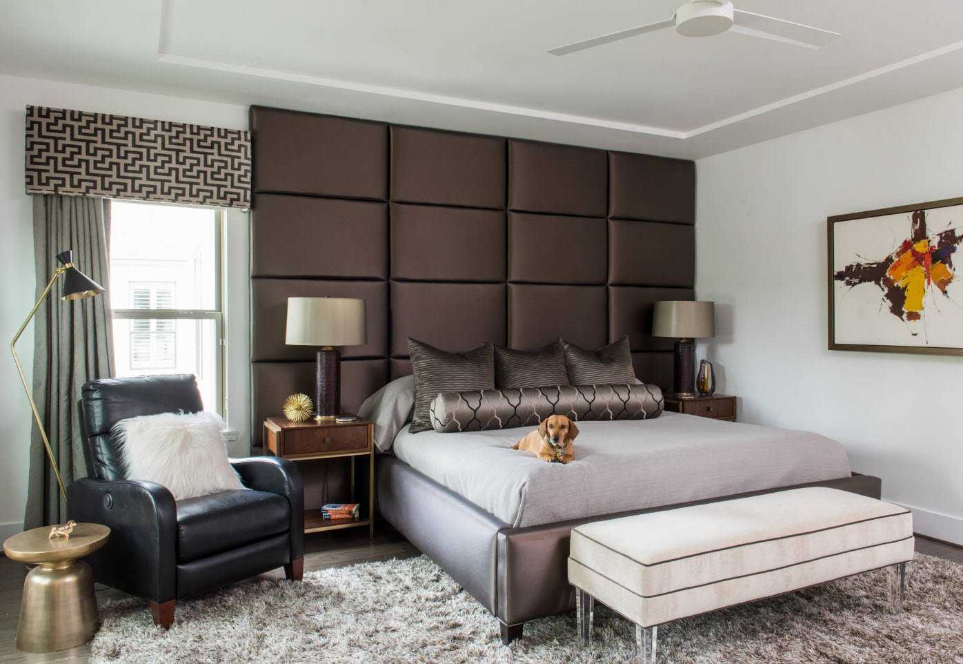 Оригинальное оформление мебели — излюбленный дизайнерский прием. Огромной популярностью пользуются двуспальные кровати с прикроватным блоком. Глубокое изголовье применяется для хранения постельных принадлежностей. В моде модели с тумбами, которые закрепляются по бокам постели.