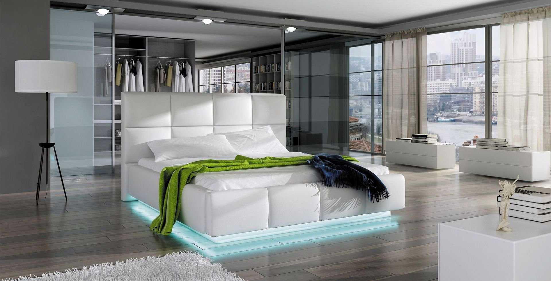 Корпус этих современных двуспальных кроватей изготавливается из дерева и традиционно обивается тканью или дорогой натуральной кожей. Конструкция также предусматривает высокое мягкое изголовье.
