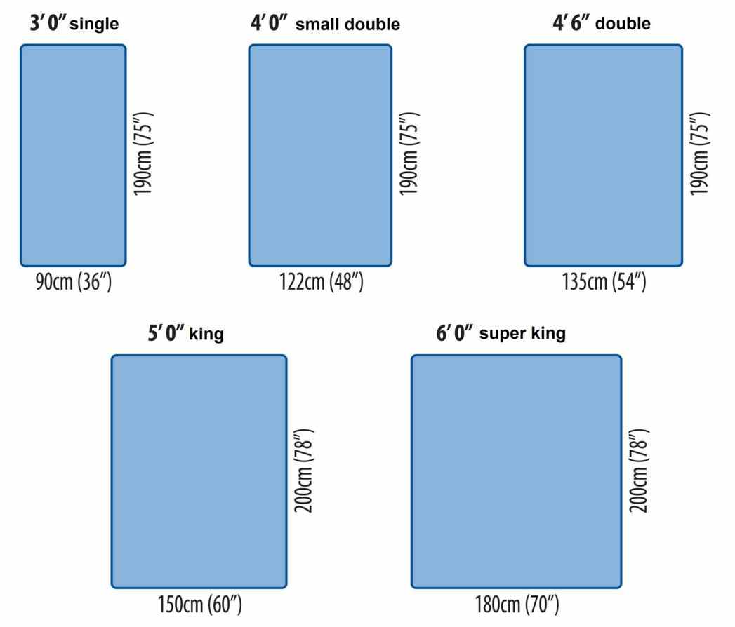 Существует множество вариантов размеров спальных мест. В каждой стране они будут разными.