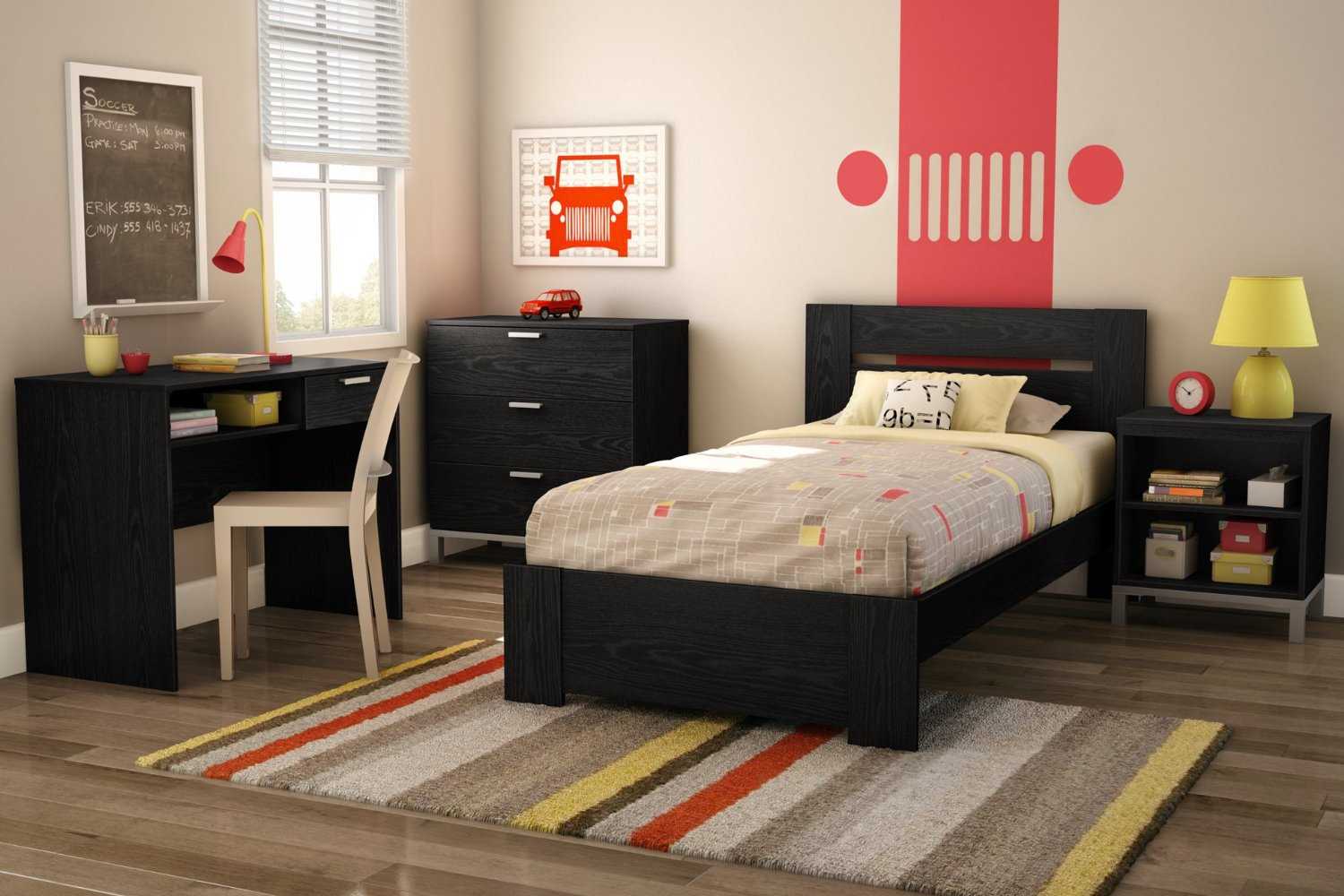 Для подростков лучше выбрать кровать лаконичного дизайна. Можно остановиться на моделях, изголовье которых обито, например, искусственной кожей.