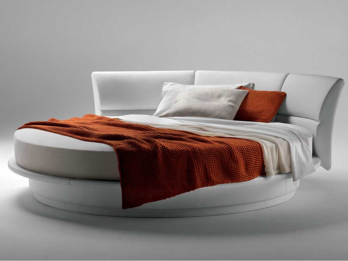 Круглые и овальные модели обычно измеряют не по соотношению длины и ширины, а по диаметру, который также рассчитывается в сантиметрах. Диаметр такой кровати колеблется от 220 до 240 см. Существуют и более массивные кровати, но подходят они исключительно для больших квартир – в маленьких такие изделия смотрятся очень плохо. Это не сделает вашу комнату более красивой.