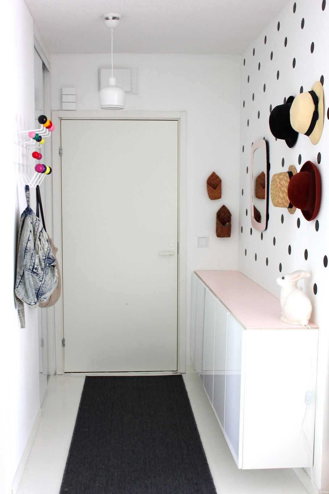 При выборе белой мебели стены сделайте яркими. Это оживит помещение, придаст ему настроения. Если хотите стены с узором или броским принтом, убедитесь, что это не сузит пространство. Это же касается и тёмных красок, которые уместно применить к одной-двум деталям, но не ко всей прихожей в целом.