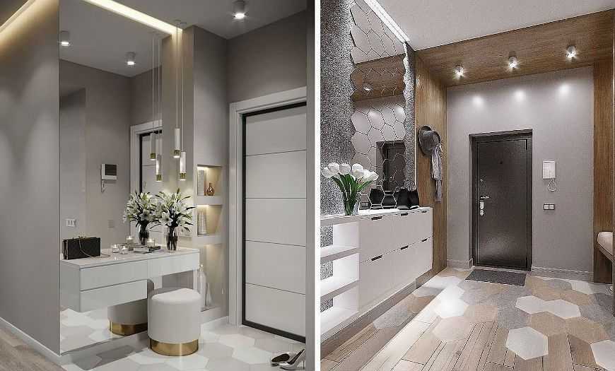 - установка мебели на ножках, с зазорами (возле входа быстро скапливается грязь, поэтому стоит заранее упростить уборку);
