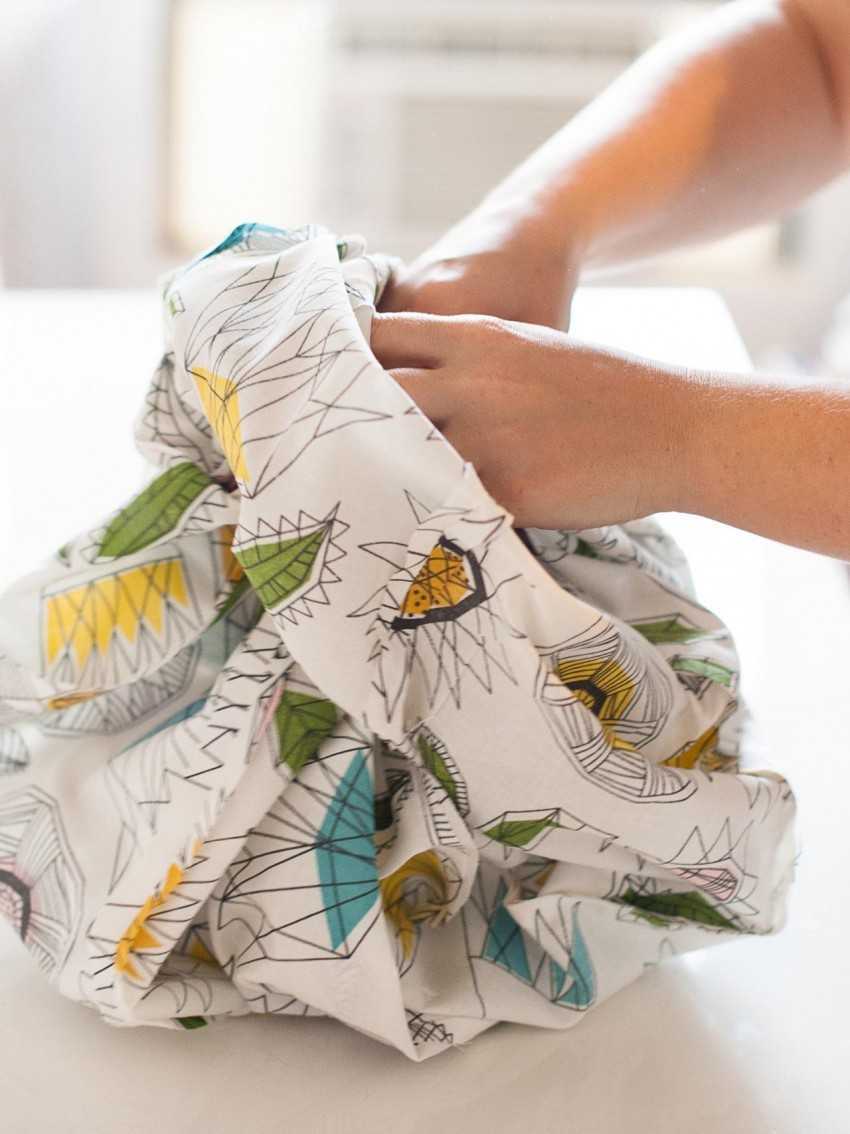 На готовый пуфик надевается чехол, который можно сшить из чего угодно. |