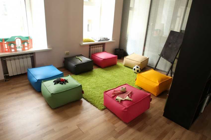 В отдельную категорию можно отнести пуфы, снабженные спинками. Они напоминают маленькие детские креслица.