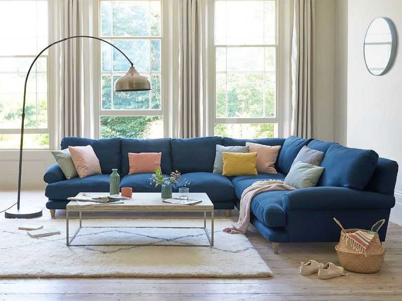 Комфортные угловые диваны с декоративными подушками и подлокотниками