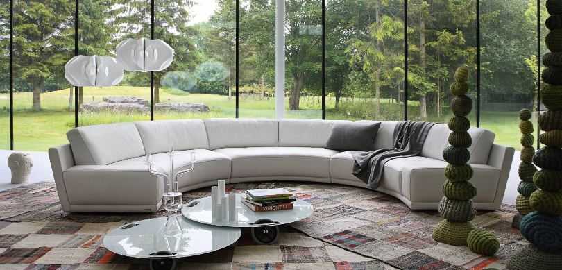 Полукруг. При необходимости зонировать пространство лучшим выбором станет диван полукруглой формы, в таком случае снижается вероятность получить синяк, ударившись об угол конструкции. Такая модель подойдет и для помещений нестандартной конфигурации, например, для эркеров.