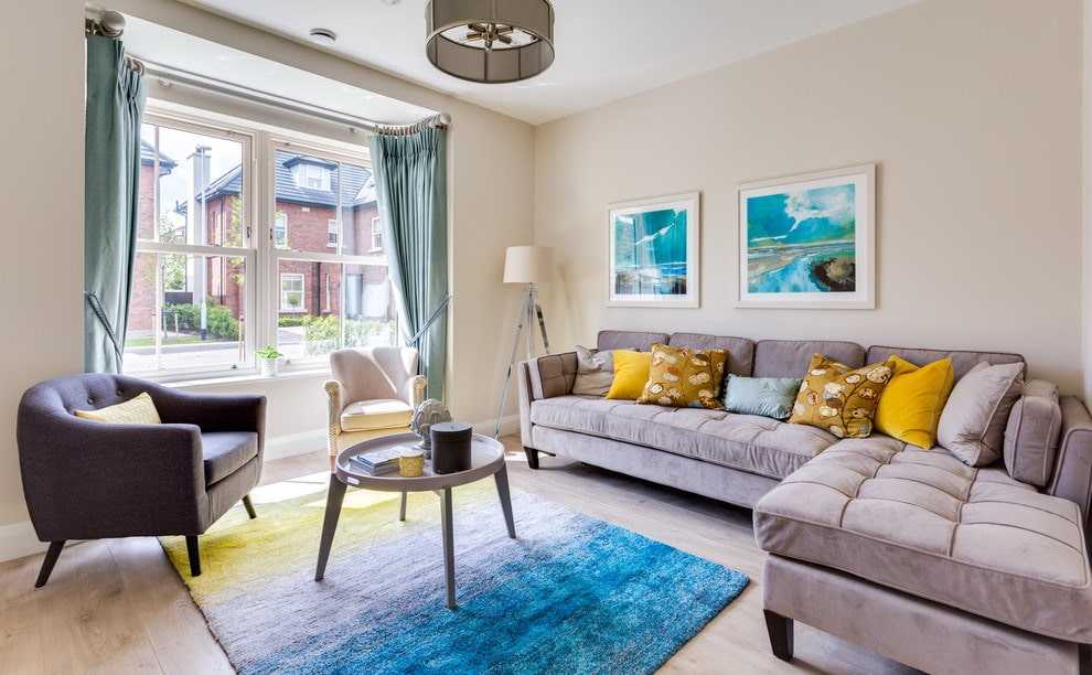 Если гостиная маленькая, его можно поставить у окна: это позволит освободить три стены для маневров и сэкономить место. Единственный недостаток – спать возле радиатора не всегда комфортно.