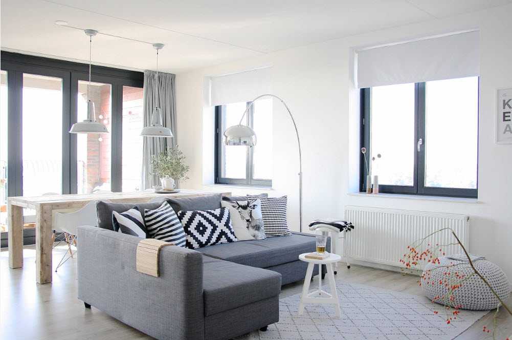 Хорошим решением может стать и модульный диван, элементы которого можно по-разному комбинировать. Минималисты могут выбрать более светлый вариант, а максималисты — более яркие цвета и декоративные подушки. Во втором случае цвет дивана должен быть единственным доминирующим цветом в интерьере. Благодаря этому вы избежите впечатления хаоса и уныния.