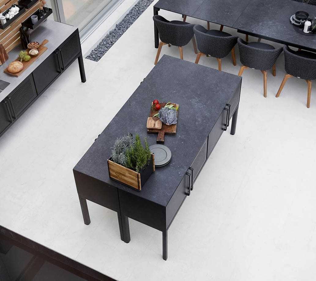- Столы в линейном стиле с прямыми и одинаково прямыми углами – хороший вариант для кухни в минималистском стиле.
