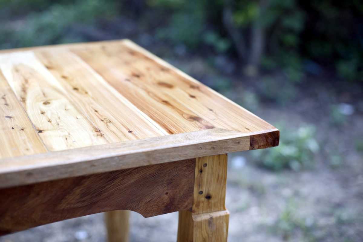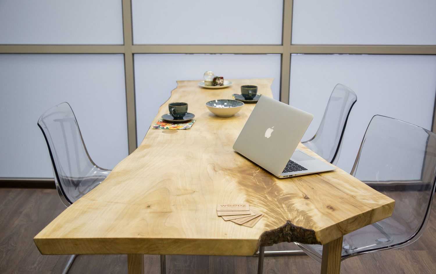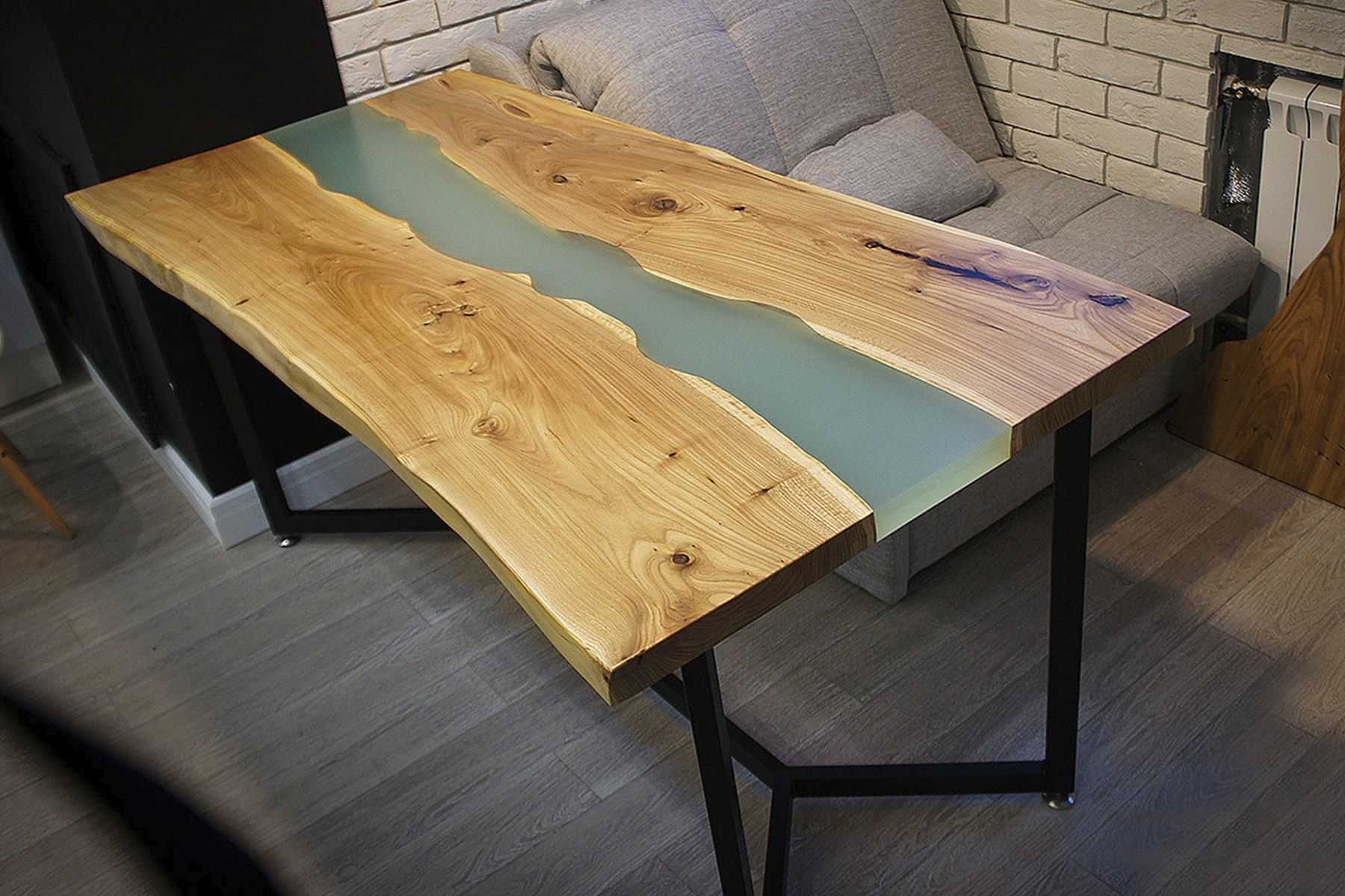 Стол лучше всего делать из дерева, которое можно дополнить стеклом, эпоксидной смолой, мозаикой, металлом — все зависит только от фантазии и практических навыков мастера. Сегодня несложно найти любую, даже экзотическую древесину, но опытные мебельщики выделяют несколько пород:
