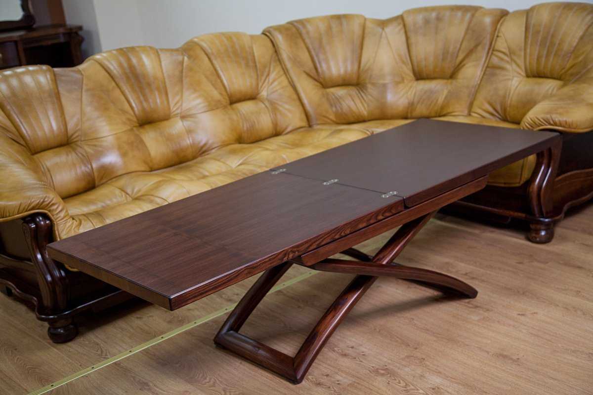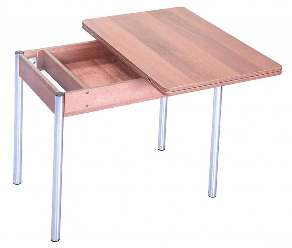 Такой вид стола может иметь несколько вариантов раскладки и иметь газлифт или пружины. Последний вариант считается более надежным.Двойное разложение. Модель состоит из двух поверхностей, сложенных друг на друга.