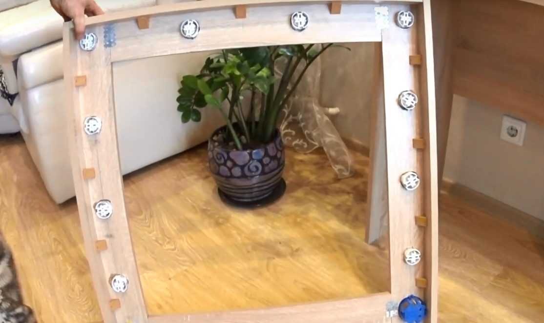 Детали рамы гримерного зеркала с подсветкой традиционной конструкции