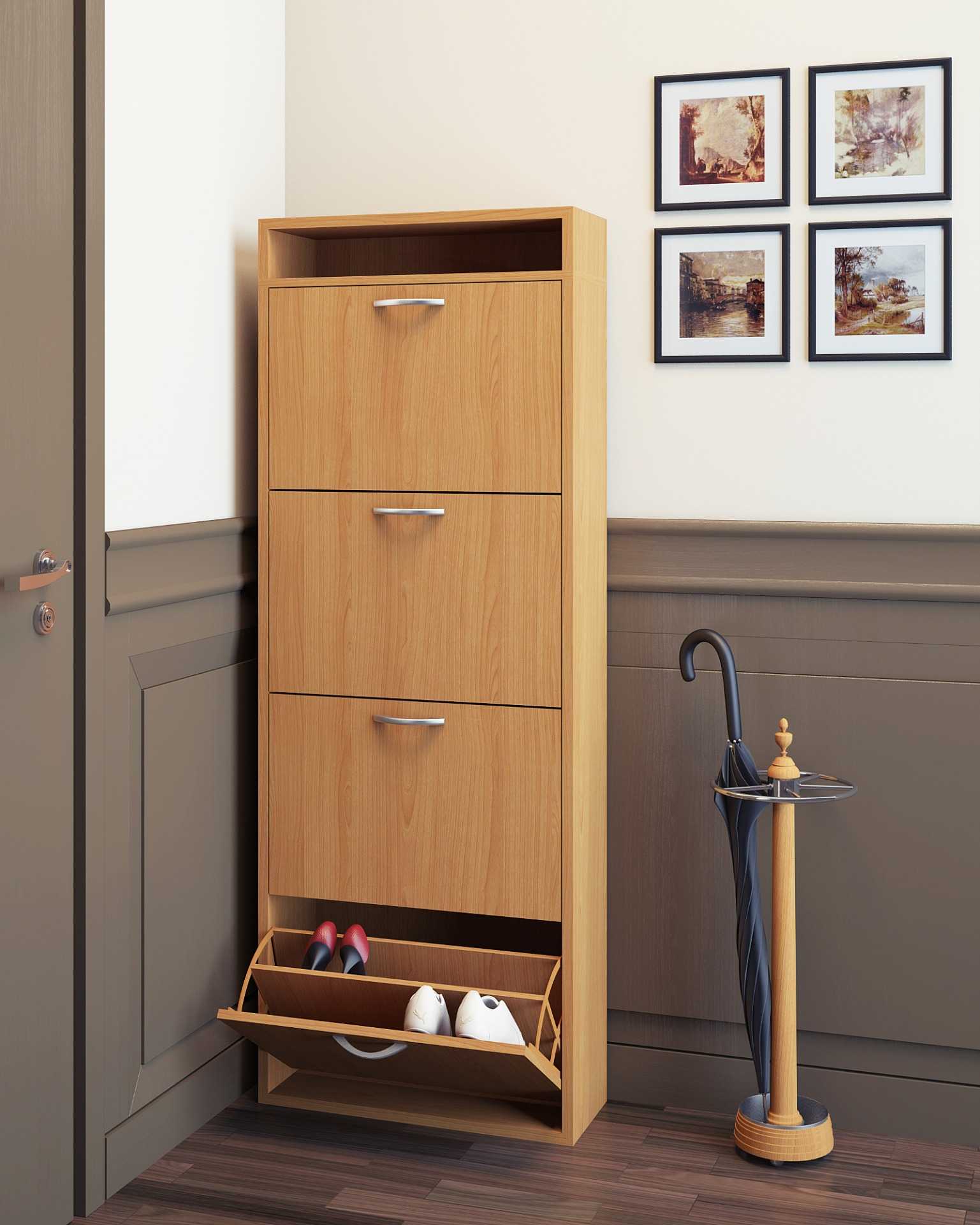 При отсутствии гардеробной обувные тумбы устанавливают в прихожей. Выбирают такие модели, в которых помещается не только повседневная обувь, но и вся сезонная. Выбор габаритов, цвета и дизайна зависит от отделки самого помещения. Желательно предпочесть те цвета и материалы, которые уже присутствуют в оформлении входной зоны. Размеры и расположение тумбочек выбирают с таким учетом, чтобы не загораживать мебелью проход.