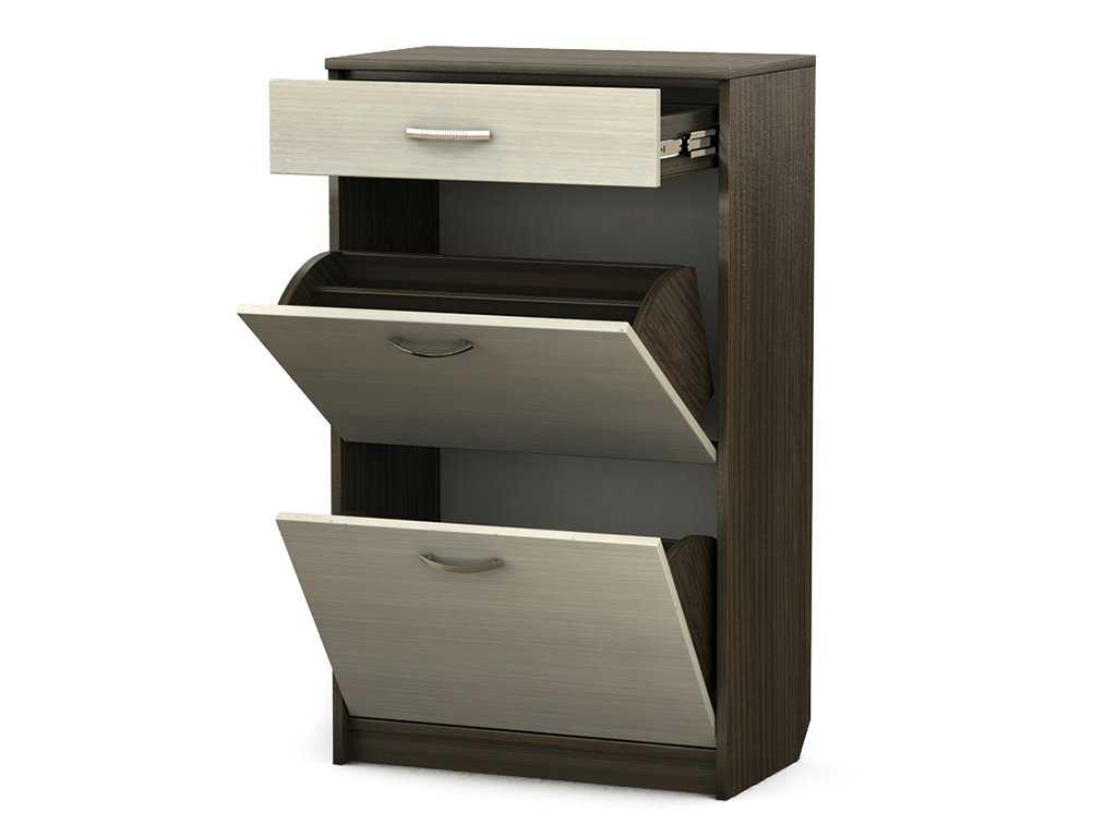 С выдвигающимся ящиками. Тумбы под обувь с таким механизмом – популярный вариант мебели. Можно сказать, что это обычный комод. При желании в нем хранят не только обувь разных размеров, но также зонты, шапки, перчатки, прочие предметы гардероба. Такая тумба подходит для прихожих, в которых нет другой мебели.
