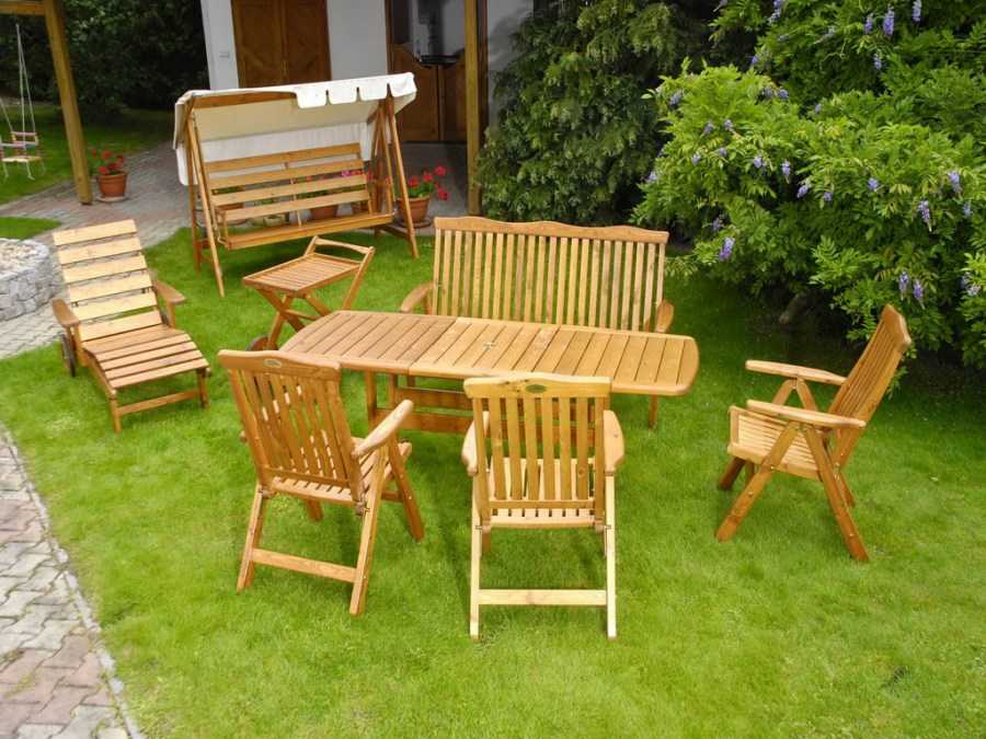 Популярна мебель из массива дерева. В отличие от металла, она является экологичной и безопасной. Как уже было отмечено, изготавливаться дачная мебель может из разных пород дерева. Самыми популярными являются хвойные. Именно они обладают целебными свойствами, но примечательны выделением эпоксидной смолы, поэтому обязательно следует древесину обессмолить, чтобы мебель не пачкала одежду.