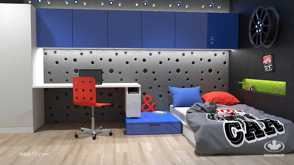 Кровать должна быть легко доступной. Размер комнаты в какой-то мере определяет размер кровати. Если комната маленькая, придется пойти на уступки. Кровати можно приобрести в виде антресольной конструкции, позволяющей сэкономить много места. Под антресолью может быть мини-кабинет с письменным столом. Двухъярусная кровать — также верное решение в случае небольшого пространства, которое будет особенно полезно для двух детей.