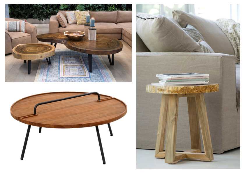 Если при обустройстве гостиной выбор пал на один из этнических стилей, то и мебель должна подбираться под стать. Так, кофейный столик в этностиле выполняется из натуральных материалов. Это может быть необработанное дерево, бамбук или ткань. Приветствуется яркий и броский декор в виде мозаики из камней или ракушек.
