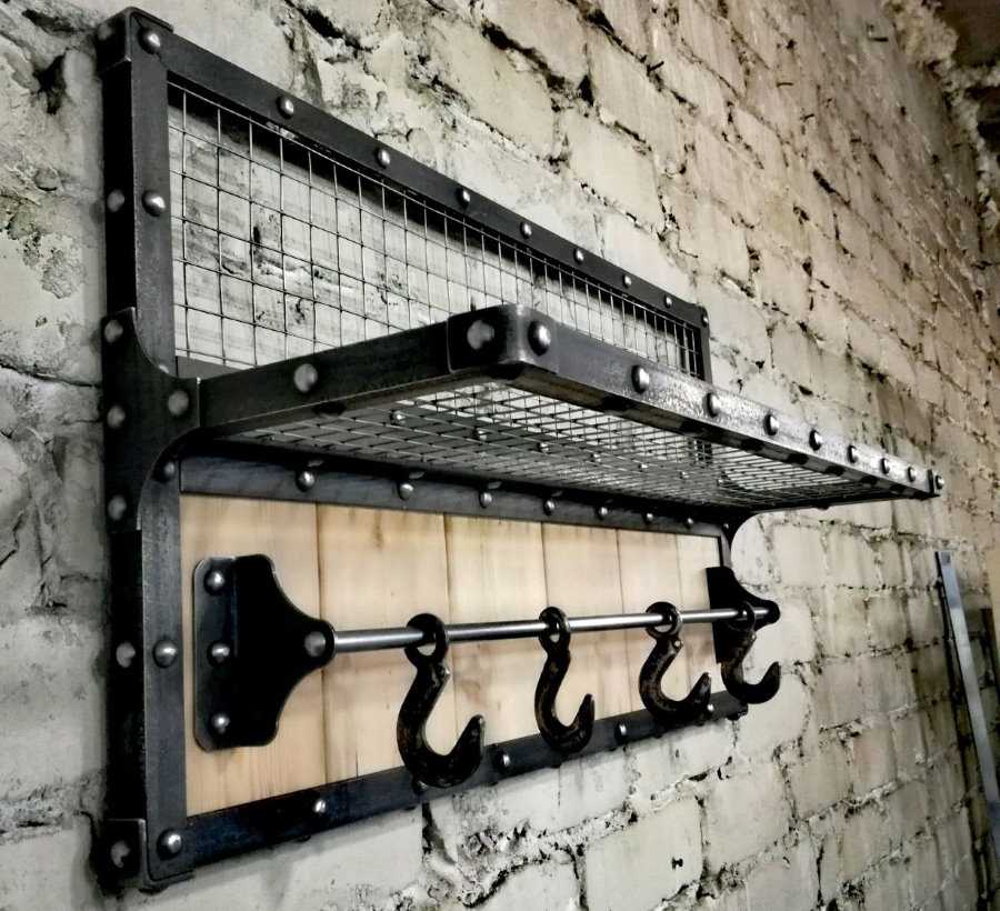 Индустриальный стиль типа лофт позволяет размещать самые необычные конструкции. Представленная вешалка, выполненная из состаренного металла, своим внешним видом очень напоминает спинку кровати.