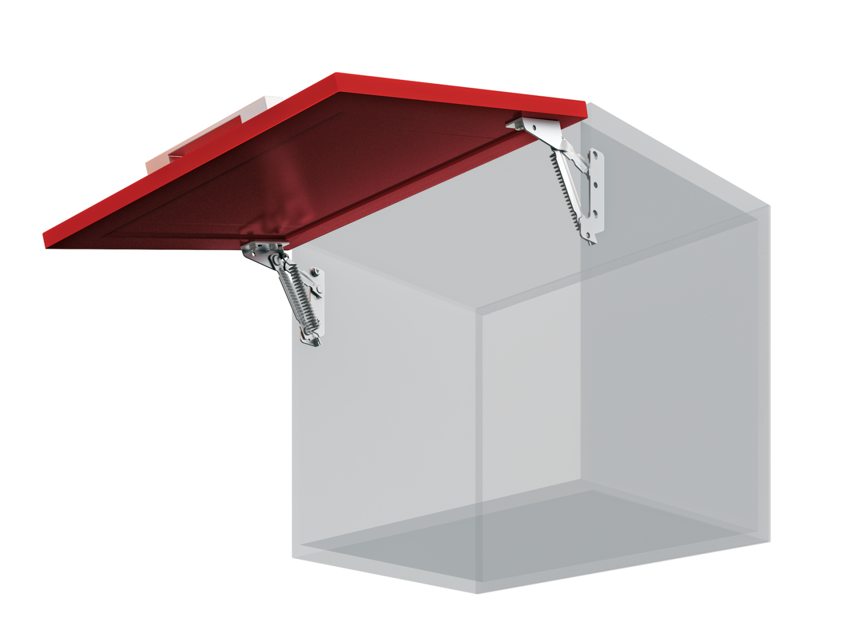 Данный механизм признан функциональным и надежным. Это самое оптимальное решение, которое обеспечивает открывание дверок, расположенных на фасаде мебели.
