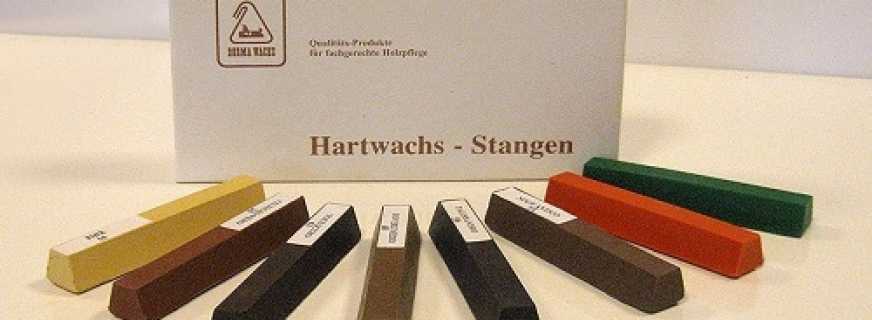 Разновидности для внутренних работ менее устойчивы к воздействию солнечных лучей и влаги. Различаются средства формой выпуска, это может быть твердый брусок, карандаш, мягкие составы, текстурой напоминающие вазелин. Воск для мебели бывает бесцветным или тонированным. Во втором случае его оттенок должен быть максимально близким к цвету обрабатываемой поверхности.