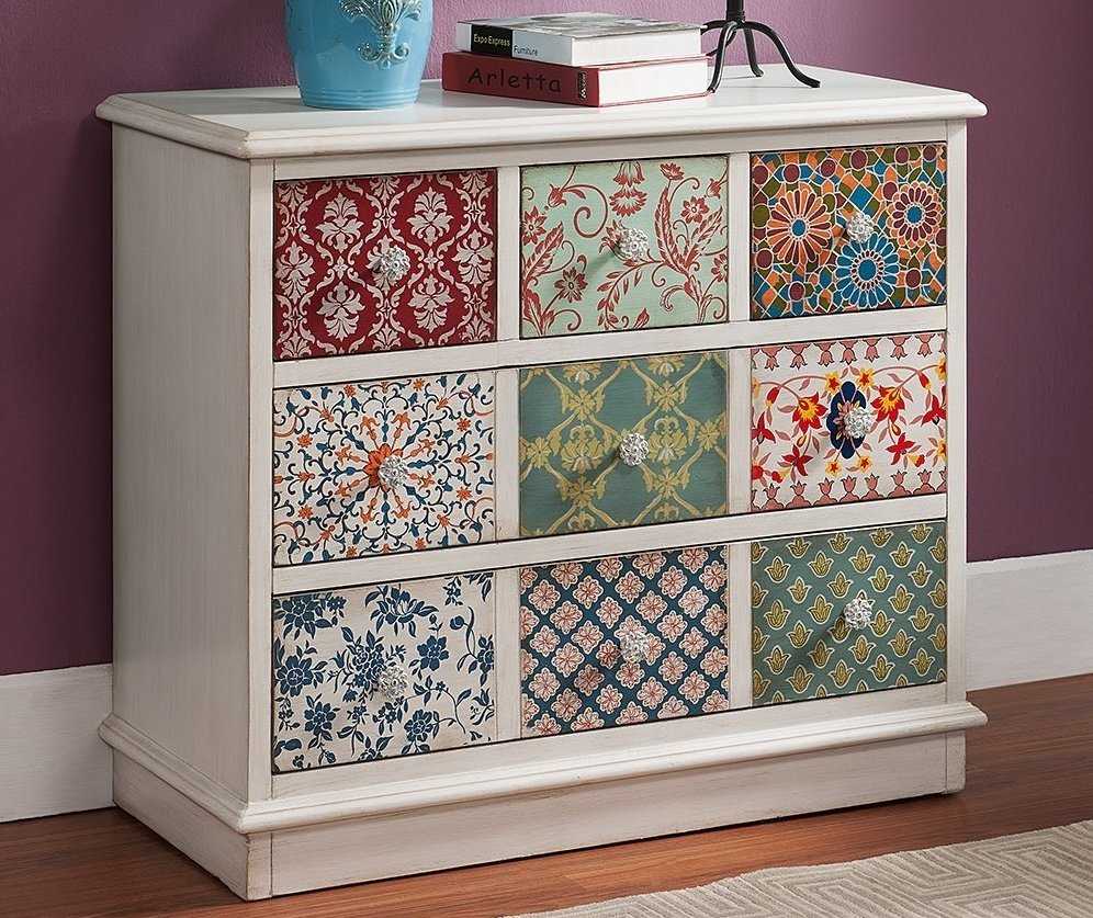 В этом стиле используют техники декупажа, состаривания предметов. Стенки изделий разрешается оклеивать обоями с цветочным орнаментом |