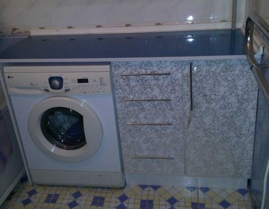 Хорошо смотрятся разновидности тумб с конструкцией, аналогичной кухонной. Достаточно просто адаптировать глубину. А высоту можно оставить такой же, она оптимальна для уровня мойки и встройки стиральной машины.