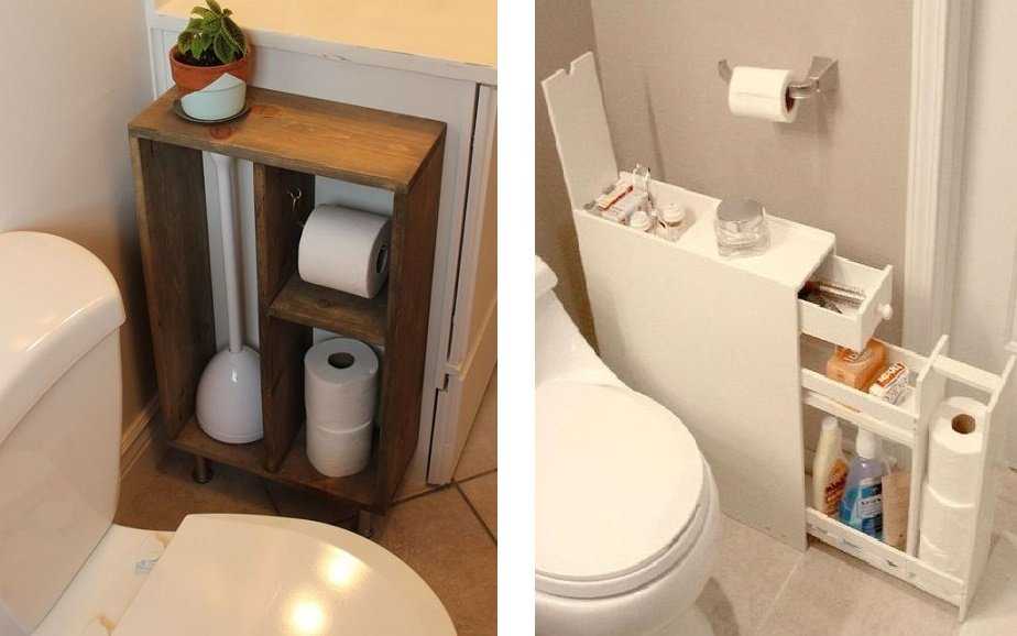Существуют разные способы рациональной организации свободного пространства за унитазом.