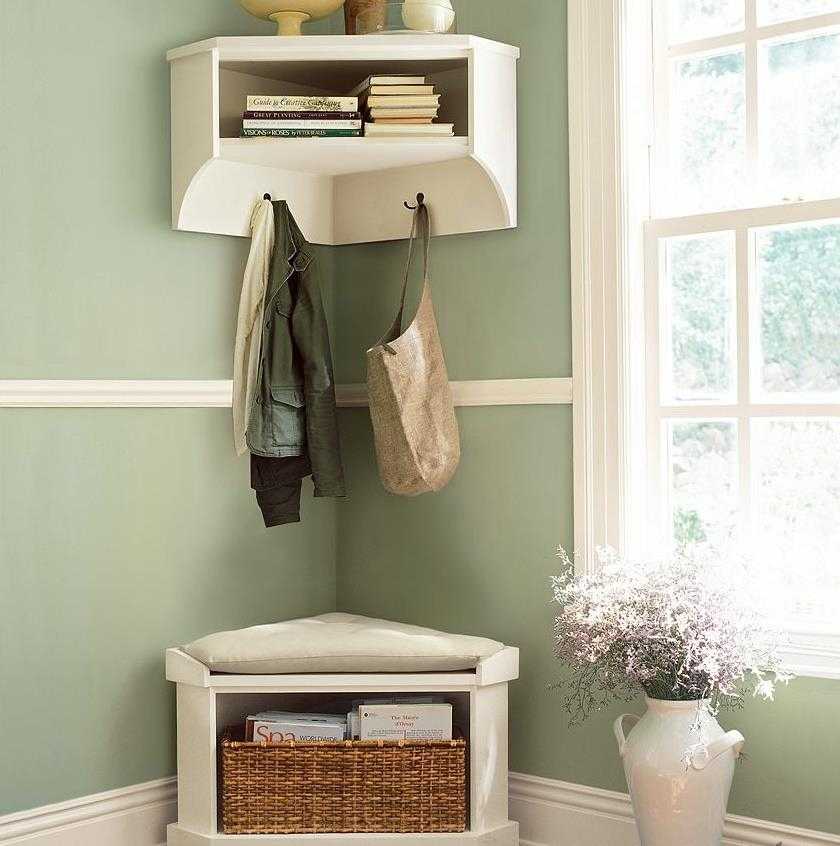 Бывает, что и этот скромный набор не вмещается, и тогда приходится обходиться вообще вешалкой или набором крючков, небольшой полочкой и зеркалом