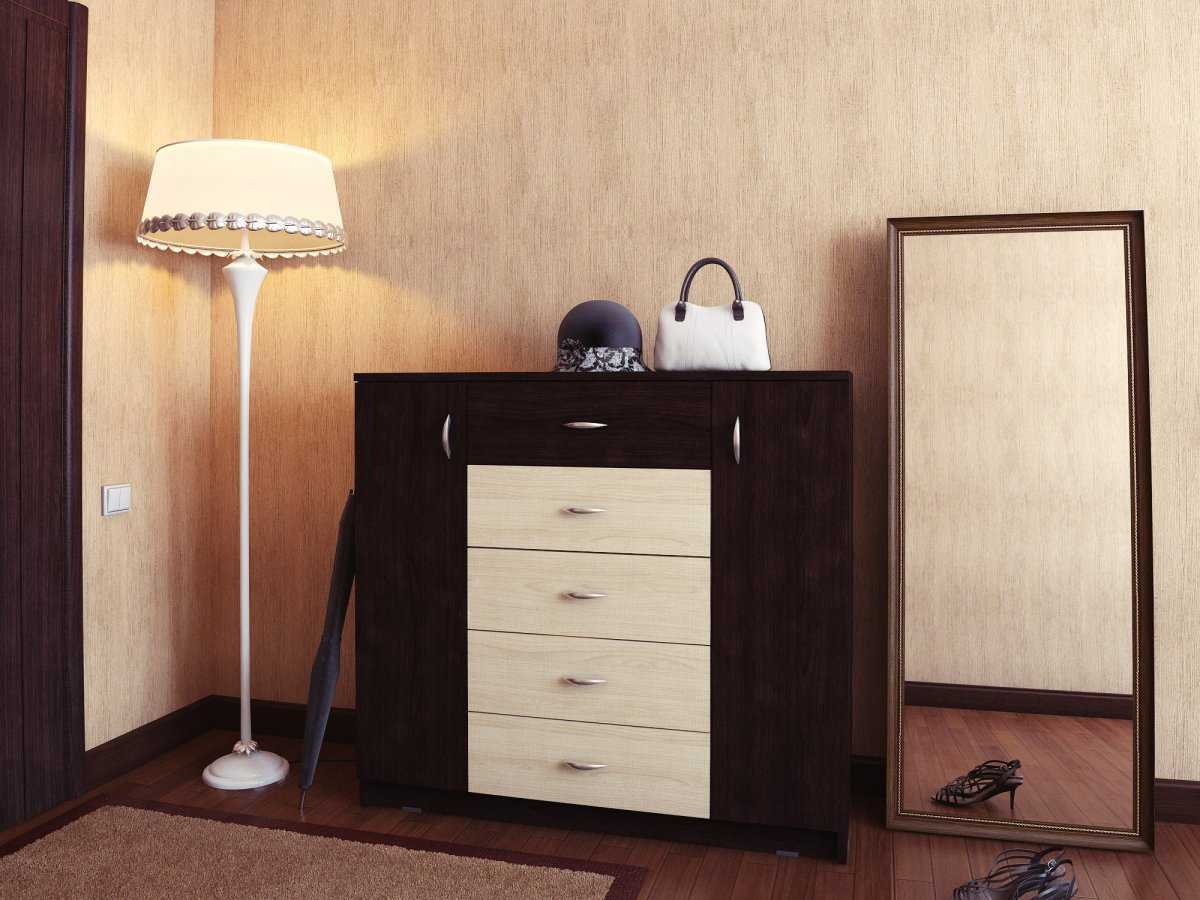 - широкие конструкции подходят только для коридоров, обладающих значительными размерами и шириной, а при этом в таком комоде можно хранить большое количество верхней одежды, мелких принадлежностей и других предметов, требующихся именно в этом помещении;