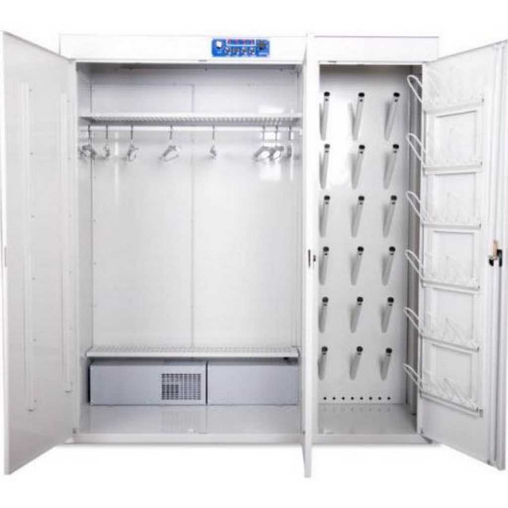 Для безопасной работы сушильного шкафа нагревательный элемент мебели должен быть оснащен двойной изоляцией, защищающей деталь от попадания влаги. В шкафу устанавливают патрубок с шибером для подключения вытяжной вентиляции. Чтобы сократить потери тепла, мебель оснащают качественной теплоизоляцией. Норма для сушки одежды, обуви – теплоизоляционный слой толщиною 2-3 мм.