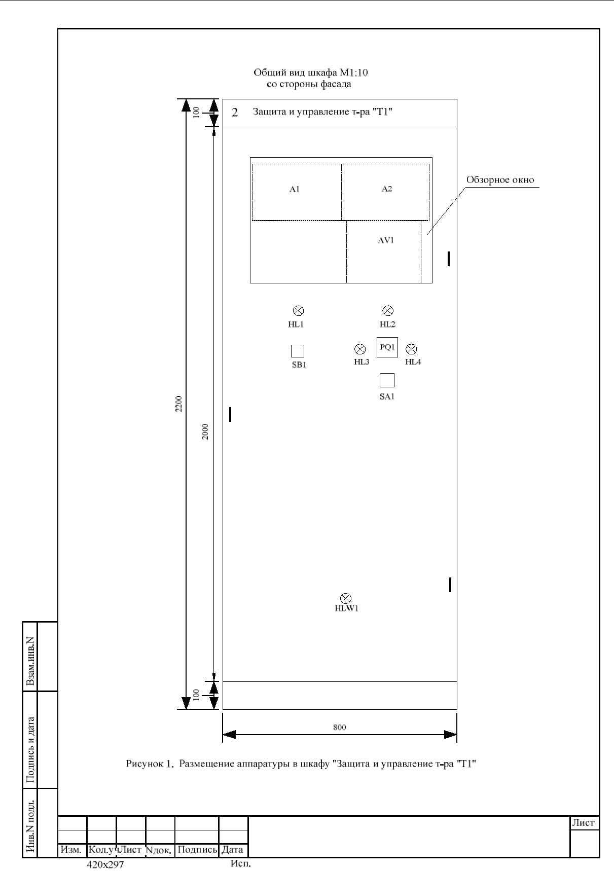 Пример общего вида фасада шкафа Приложение 2 Пример положения ключей МП защит и оперативных ключей