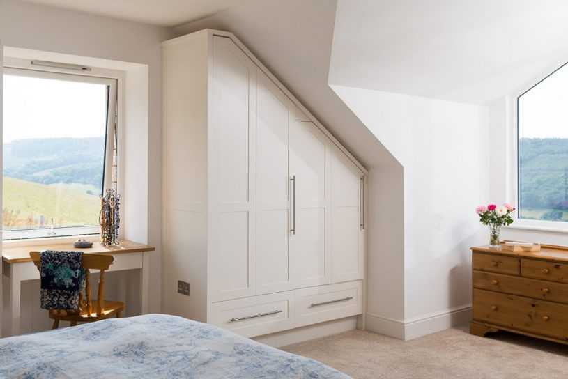 Особый вид купе-конструкций – встроенные шкафы. Они являются самыми компактными, потому что экономят место в помещении, но это вовсе не означает, что комплектующие шкафа не будут выдвигаться за пределы его дверей в процессе эксплуатации.
