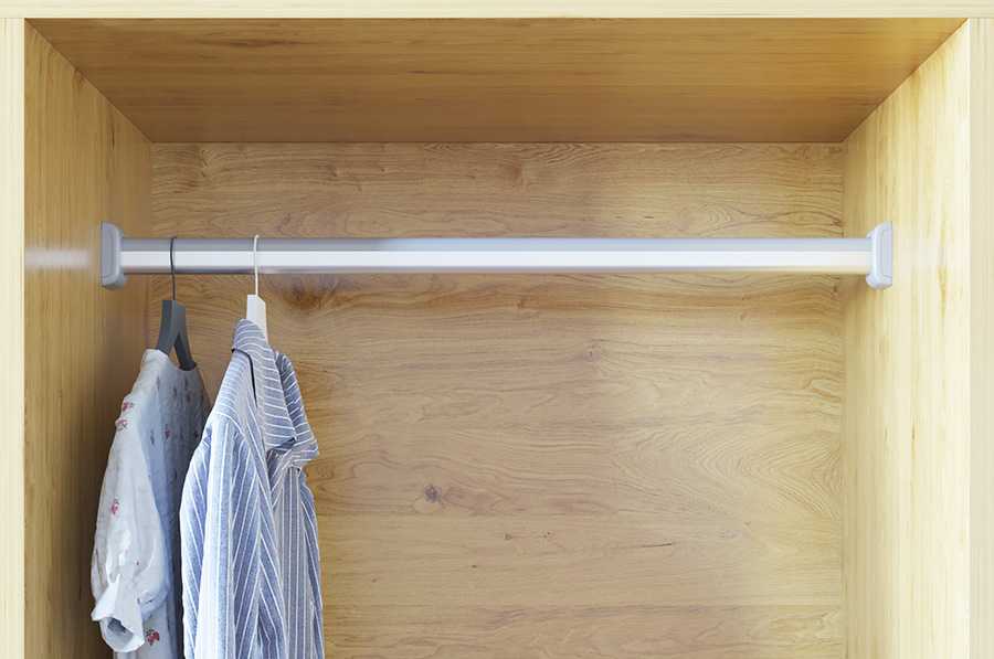 - Штанга для вешалок — может быть стационарной или выдвижной. Подходит для размещения одежды, которую нельзя мять.