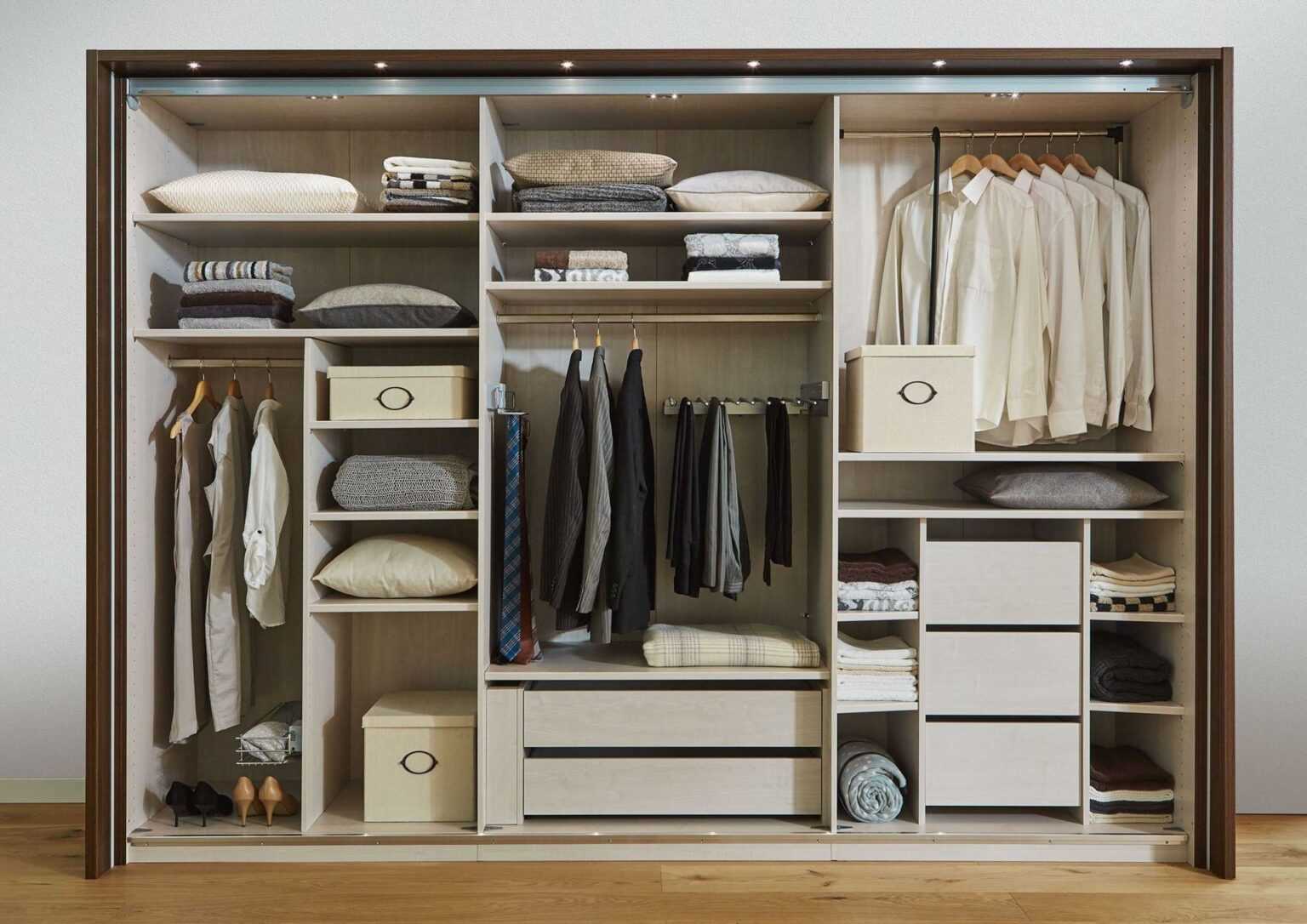 Варианты наполнения двухдверного шкафа