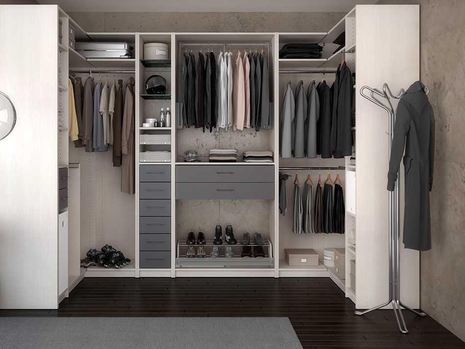 Некоторые шкафы оснащают дополнительными элементами хранения: держателями для галстуков, многоуровневыми вешалками. Как правило, более продуманную систему размещения имеет комбинированный вариант, который предназначен для хранения разных вещей. Подобные модели дополняют не только штангами и стеллажами, но также выдвижными ящиками.