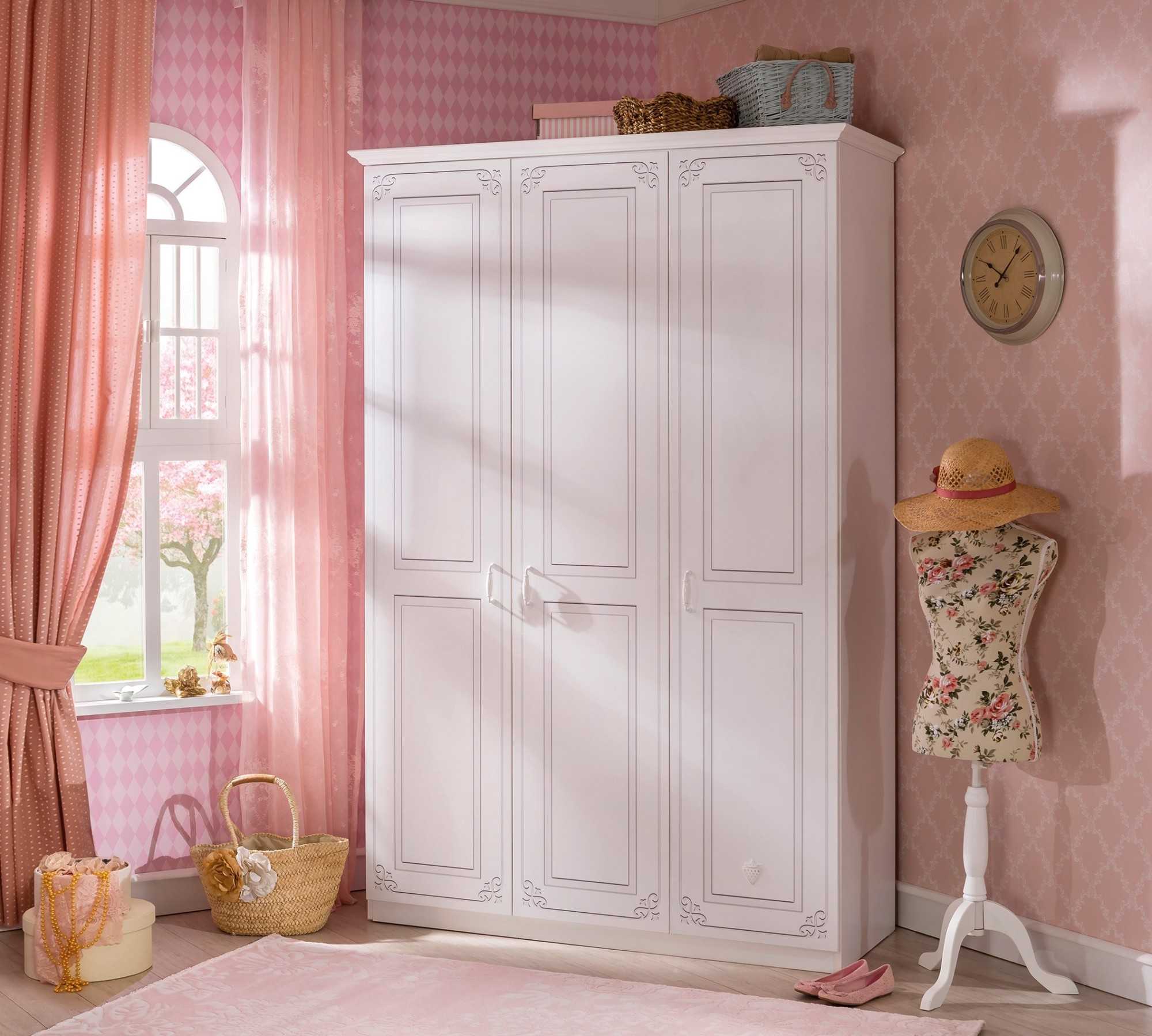Эта группа мебели представлена вместительными конструкциями с тремя раздвижными или распашными дверцами, разделенными на 2 или 3 отдельных внутренних секции в стандартном исполнении. Створки такой мебели открываются в одну или разные стороны, свои преимущества и недостатки есть у каждого варианта. К общим плюсам трехстворчатого исполнения шкафов относят: