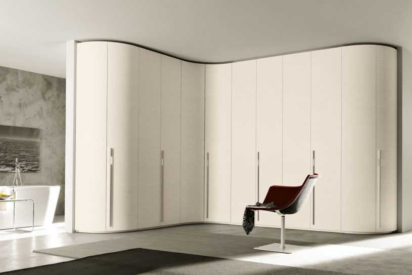 - Угловые — вместительные шкафы для малогабаритных помещений. Они экономят пространство и заменяют полноценную гардеробную.