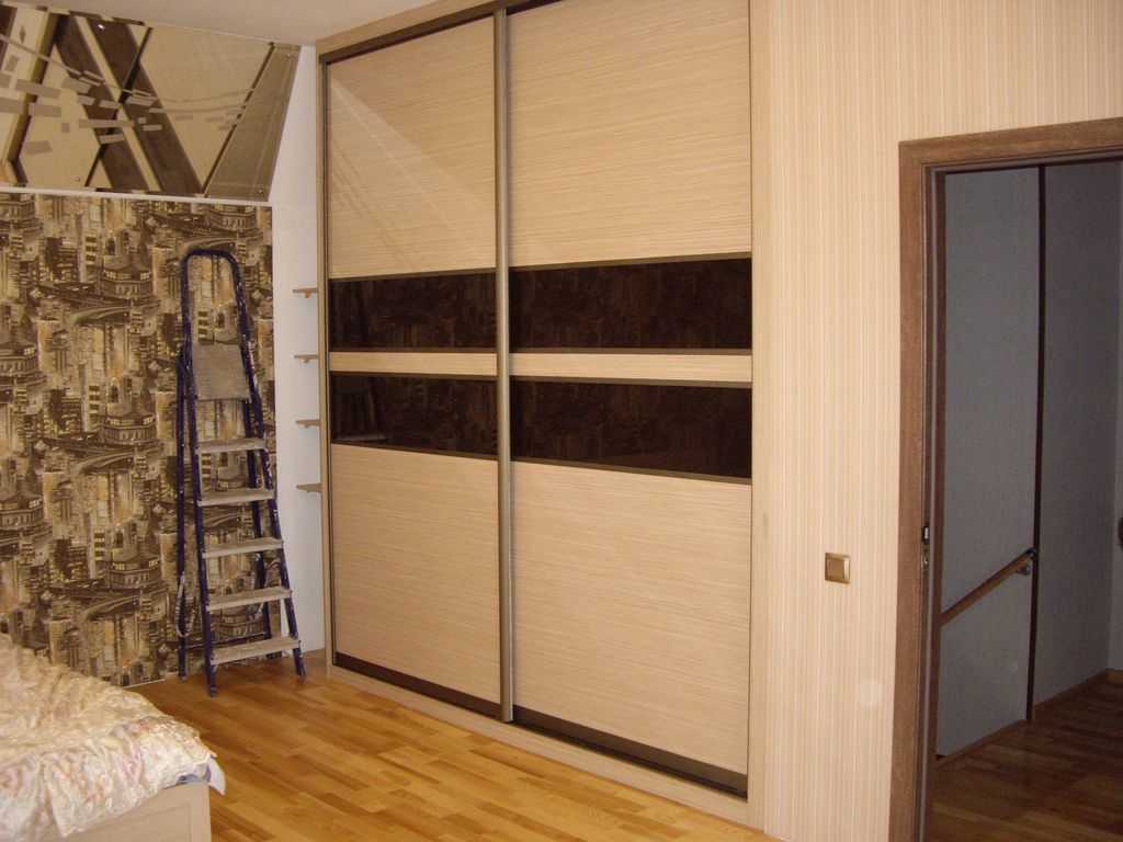 - встроенные модели — расположение шифоньеров может быть разное. Их устанавливают в разных частях комнаты, монтируют в ниши. Модели бывают шириной во всю стену, высотой до потолка.