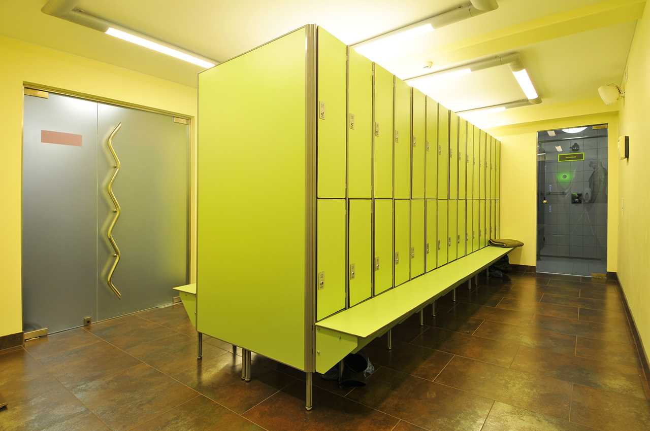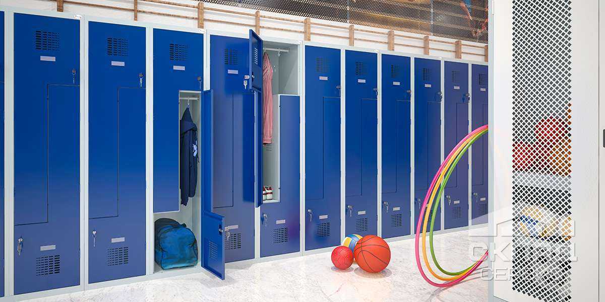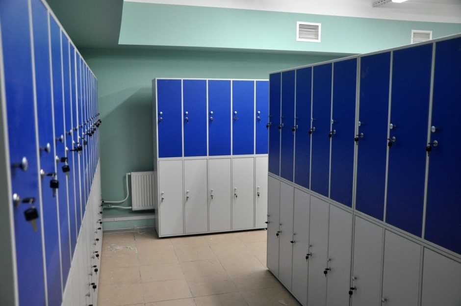 Шкафчики могут быть выполнены из металла или ДСП. В обоих случаях, в боковых стенках должны присутствовать вентиляционные отверстия, предотвращающие отсыревание вещей. Установленные требования к количеству шкафов в раздевалке – отсутствуют. Здесь всё зависит от площади помещения, но при этом в обязательном порядке соблюдаются нормы свободного пространства на одного человека.