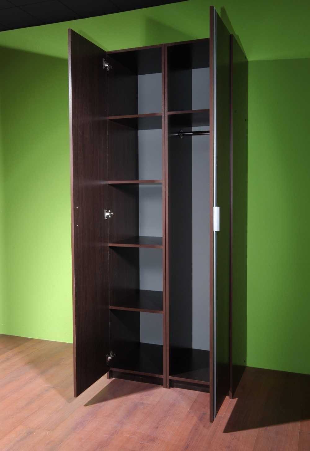 - Двухстворчатый шифоньер. Имеет прямоугольную форму и две дверки. Оптимальное решения для маленького помещения.