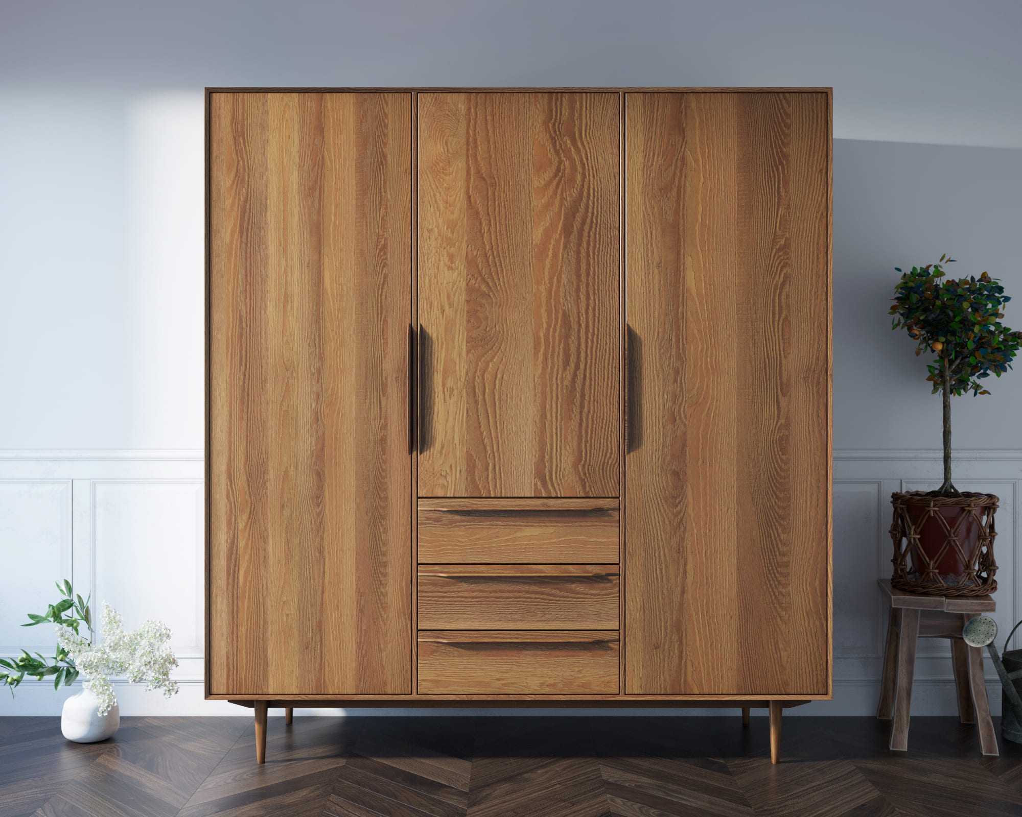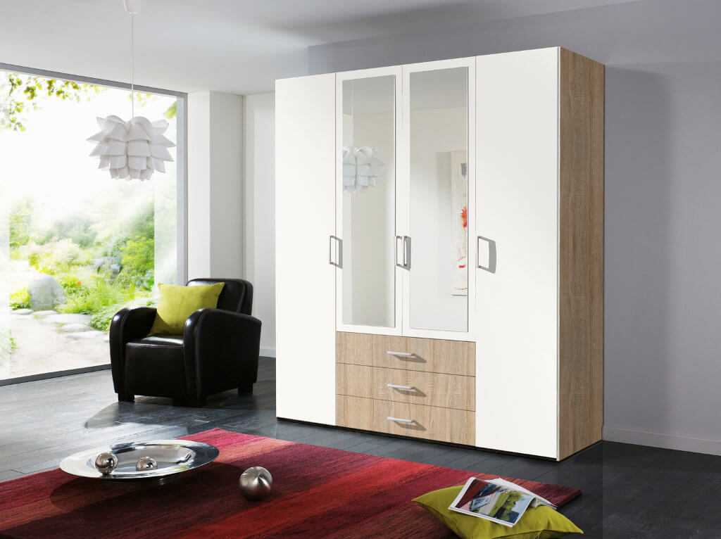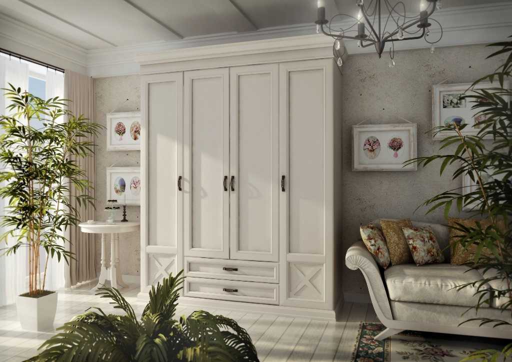 - Трехстворчатые и четырехстворчатые. Такие модели подойдут для комнат больших площадей. Благодаря их массивности они часто оснащаются антресолями для хранения сезонных вещей или одеял.