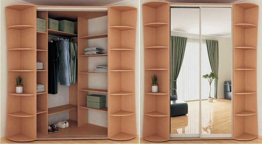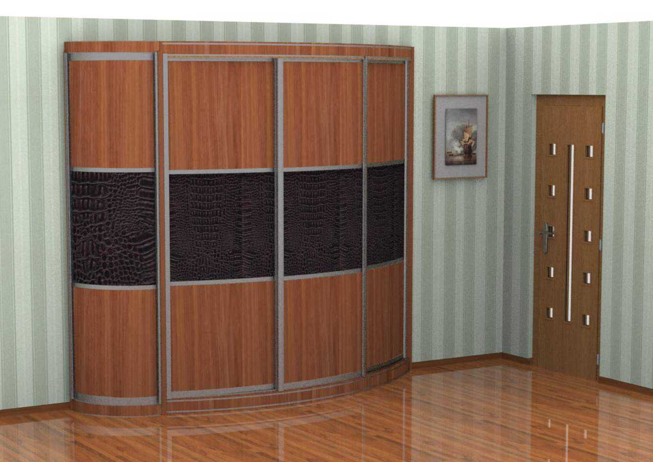 - при изготовлении угловых радиусных шкафов используют распашные, раздвижные, комбинированные двери;